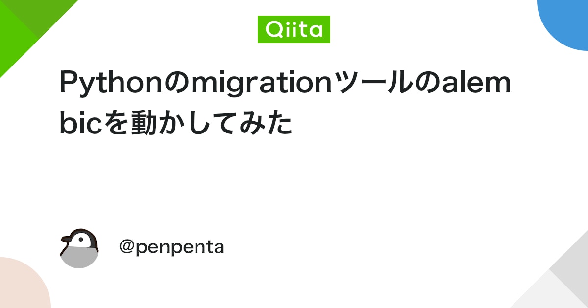 目標 python の migration パッケージalembic · PyPIを動かしてみる alembic とは?? Welcome to Alembic’s documentation! — Alembic 1.4.2 documentation Pytho...